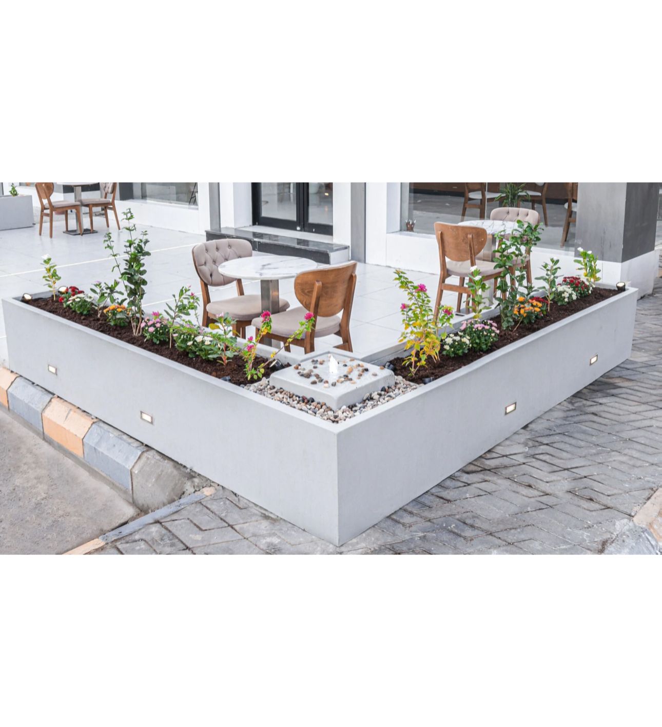 أحواض زراعية وجلسات حدائق خارجية.