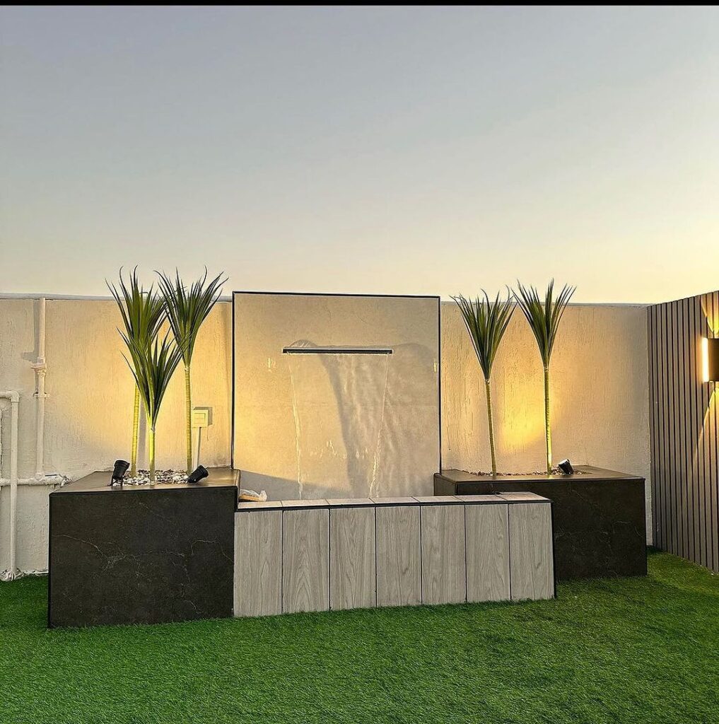 وجود شلال أو نافورة يضيف راحة نفسية وصوت مياه يبرد الجو. الشركات بجدة توفر تصاميم جاهزة أو مخصصة تناسب مساحة حديقتك.