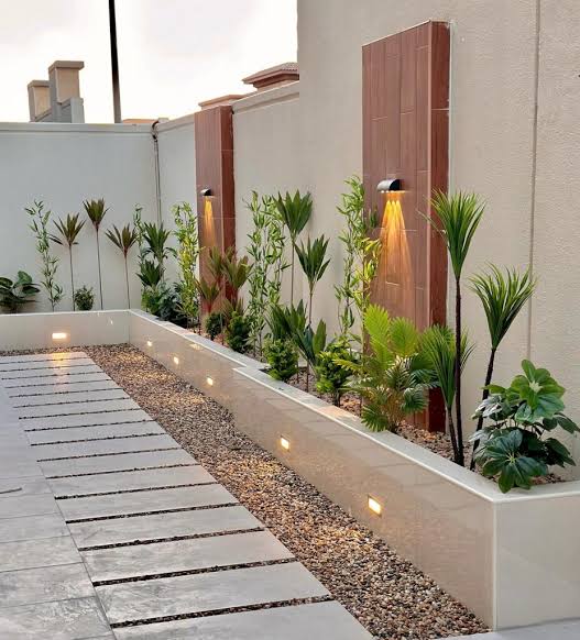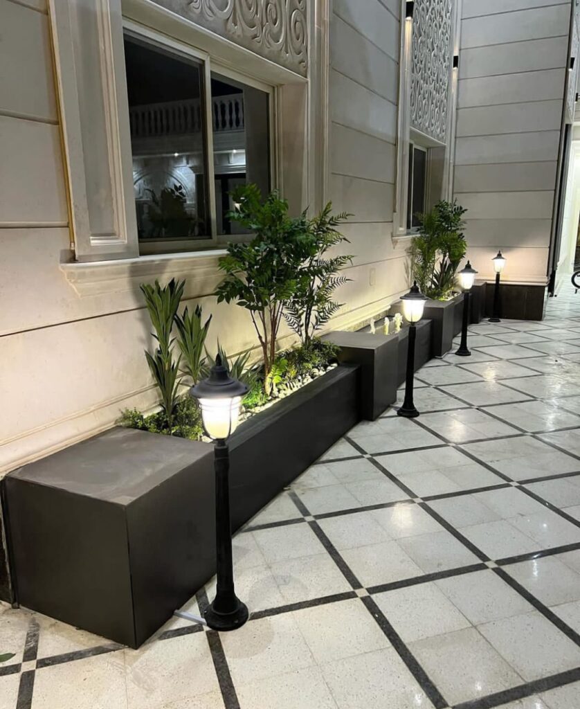 تنسيق الحدائق في جدة يتضمن استخدام مصابيح الحائط الخارجية بنسبة تفوق 60% لخلق جو ترحيبي وإبراز جمال المنزل. إضاءة سياج الحديقة تزيد من الأمان بنسبة 50%.