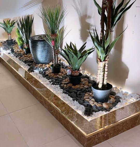 ديكورات حجرية حول الممرات أو المسبح.