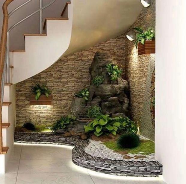 تصميم الديكورات الحجرية والخشبية مع الإنارة المبهجة