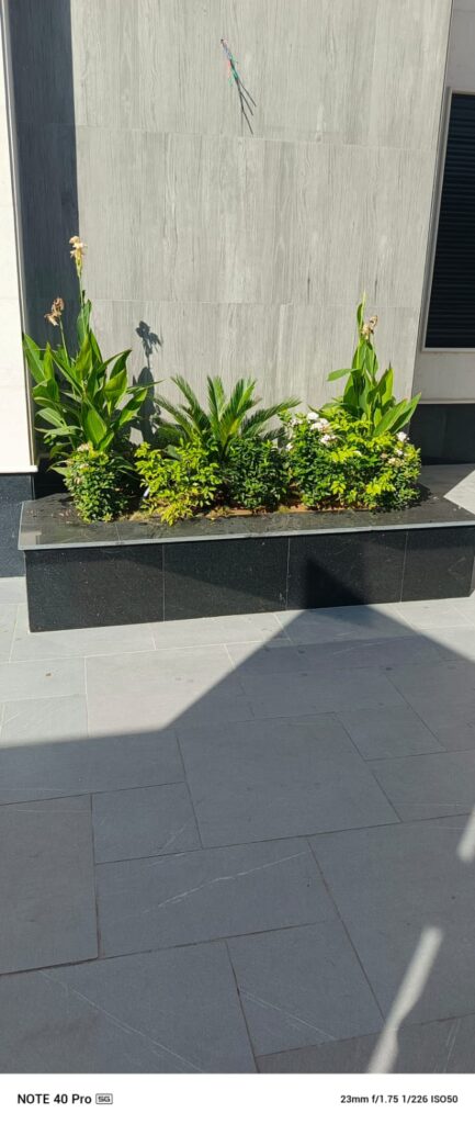 جودة في التشطيب: النباتات تُزرع بشكل مرتب مع نظام ري مناسب.